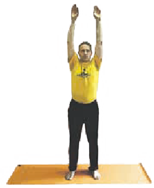 Five breaths. Hold onto a wall if you find it hard to balance.